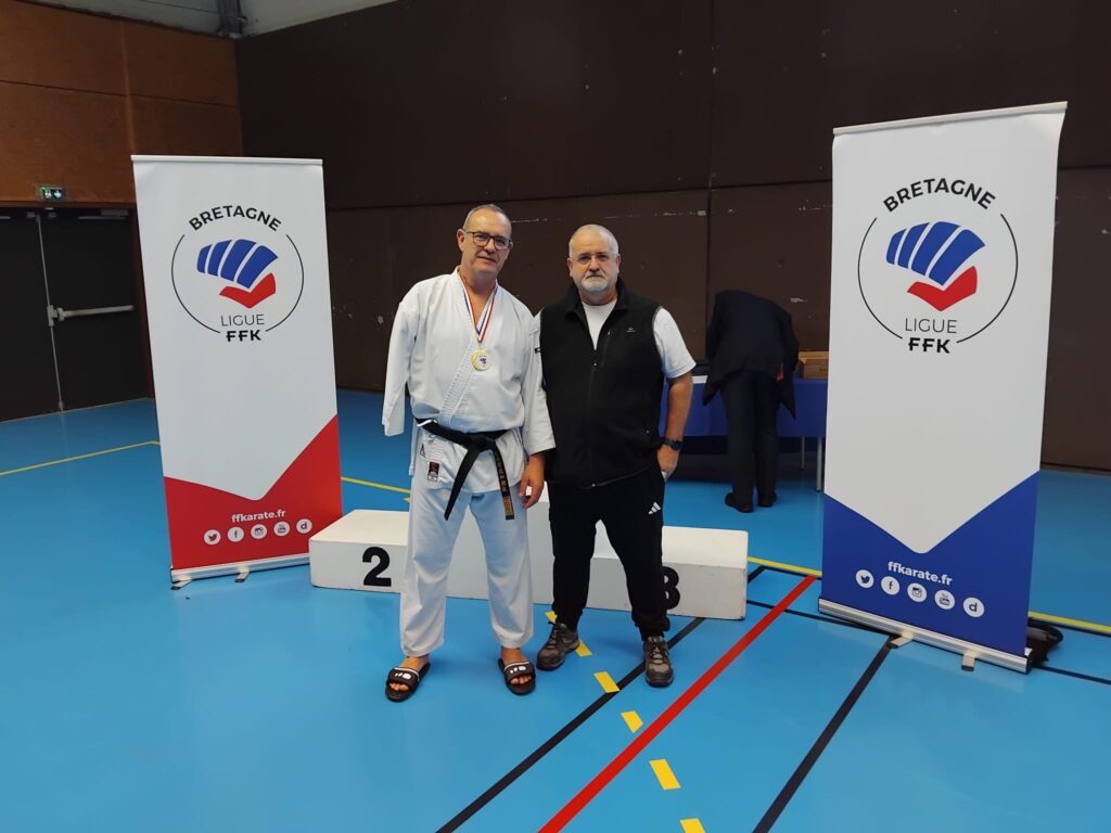 Le 18 janvier 2026, Stéphane STREIFF, élève de Sensei Fabrice Meignen, s’est présenté à la compétition para-karaté kata en Bretagne. Il est 1er dans sa catégorie et 3ème chez les vétérans. À Landivisiau, il devient premier en kumité, le 1er février 2026 et se qualifie à nouveau pour le championnat de France. Sur la photo, vous le voyez avec Didier Garin qui l’accompagnait lors de ces compétitions.